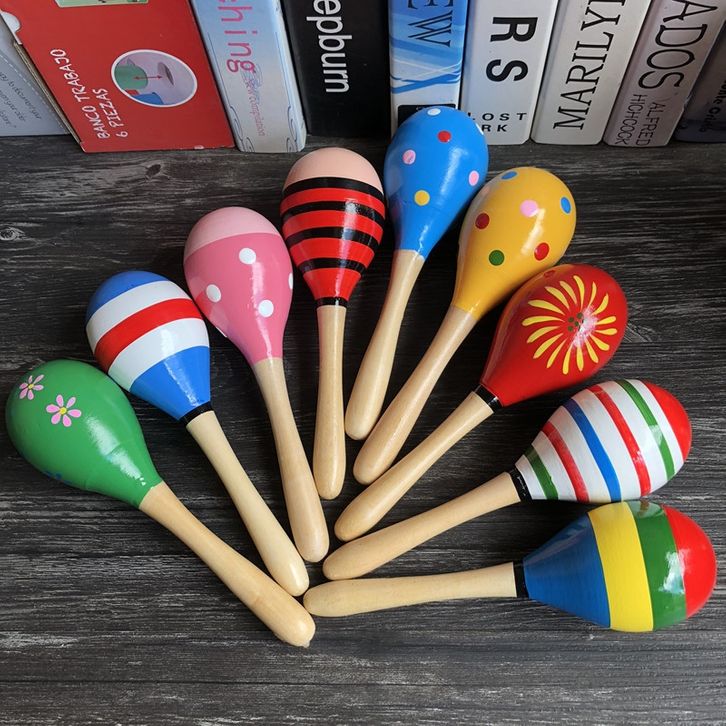 WD Baby Maracas Kayu Mainan Kerincingan Kayu Bayi Wooden Rattle Marakas Kayu Genggam terlaris,