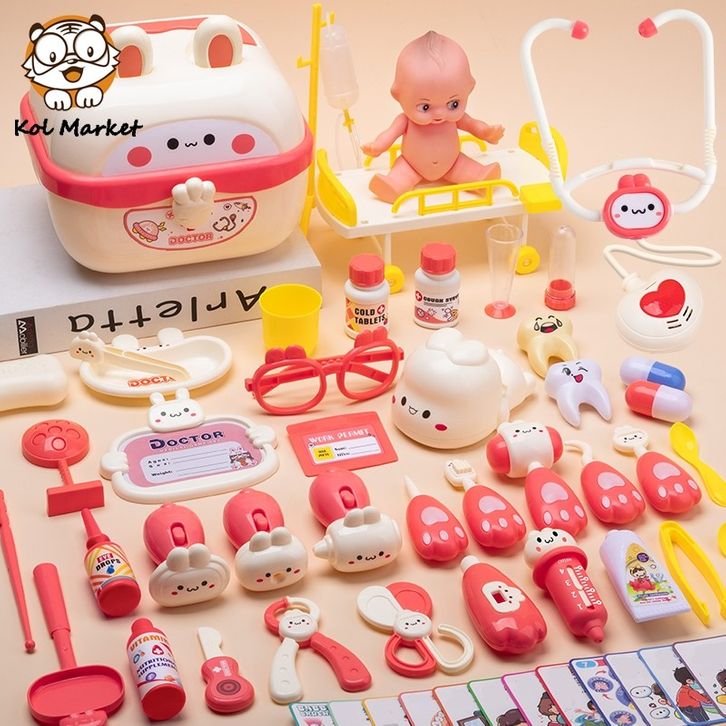 40/61Pcs Mainan Dokter untuk Anak Koper Dokter Set Mainan Anak Perempuan Mainan Pendidikan Dokter