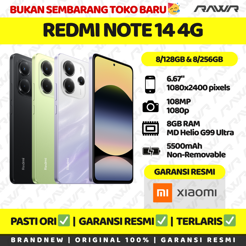 [RAWR MALL] XIAOMI REDMI NOTE 14 4G 8/128GB - 8/256GB GARANSI RESMI XIAOMI INDONESIA