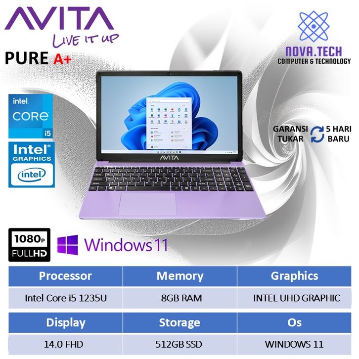 Avita Pura A+ Intel Core i5 1235U Ram 8GB 512GB Ssd Windows 11 Layar 14.0fhd