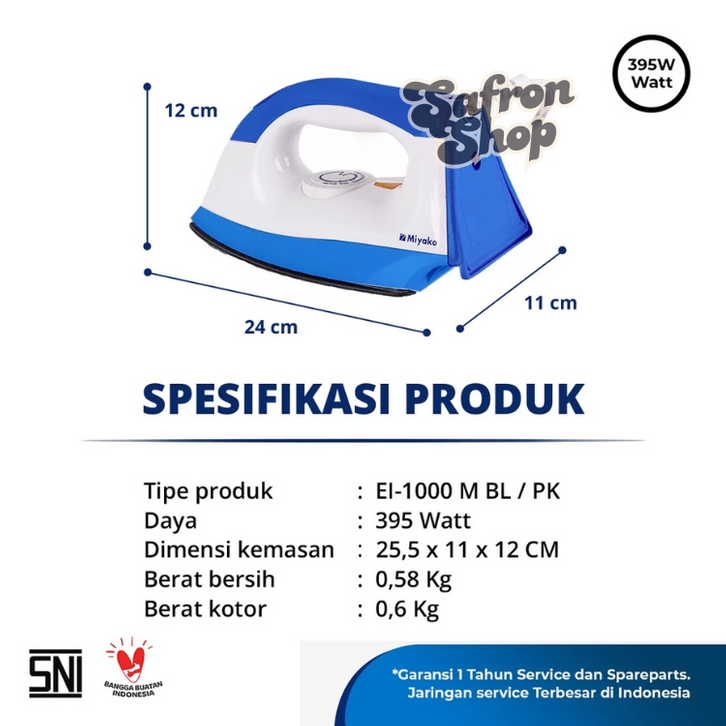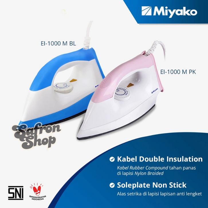 MIYAKO SETRIKA ANTI LENGKET EI 1000 M / EI1000 M / EI-1000 M (395W) GARANSI RESMI