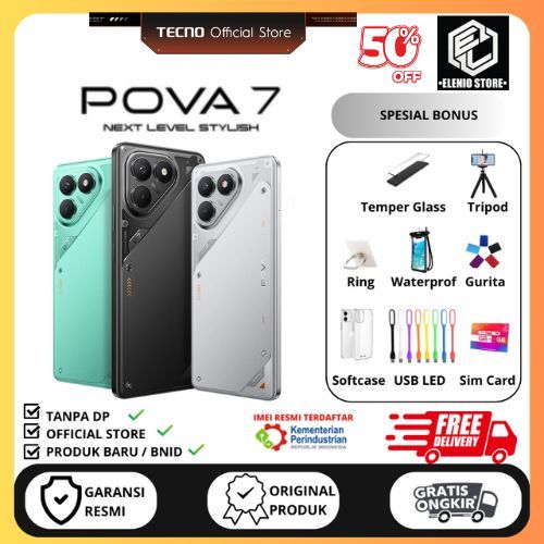 [Official Store✔] TECNO POVA 7 16/256GB - 7000 mAh - Mediatek Helio G100 Ultimate - 108MP Macro Camera - ANDROID 15