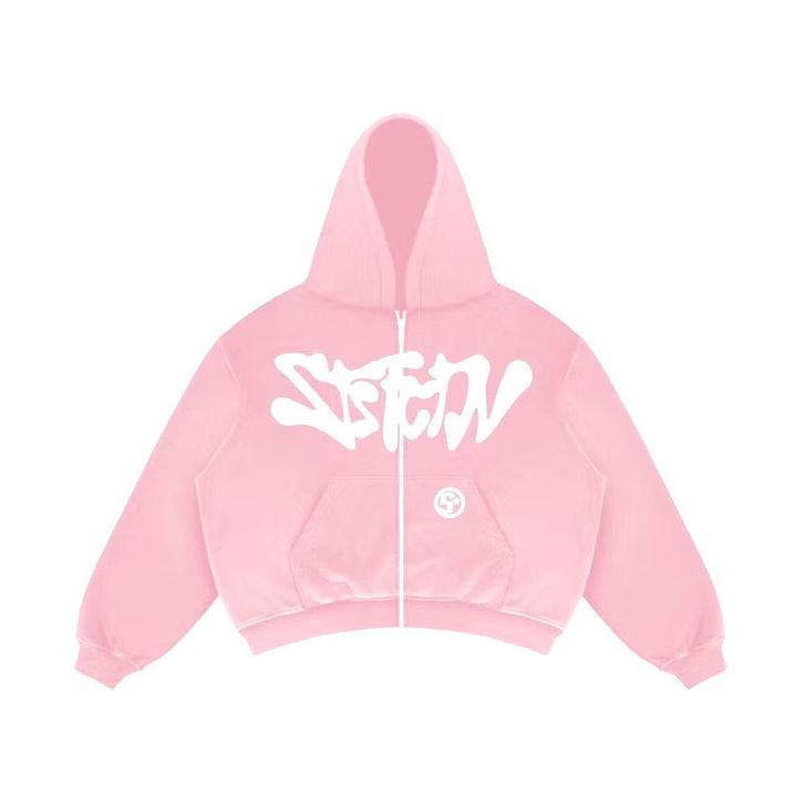 Jaket Hoodie Zipper Boxy 330GSM Starsy Puff Pink Satisfaction