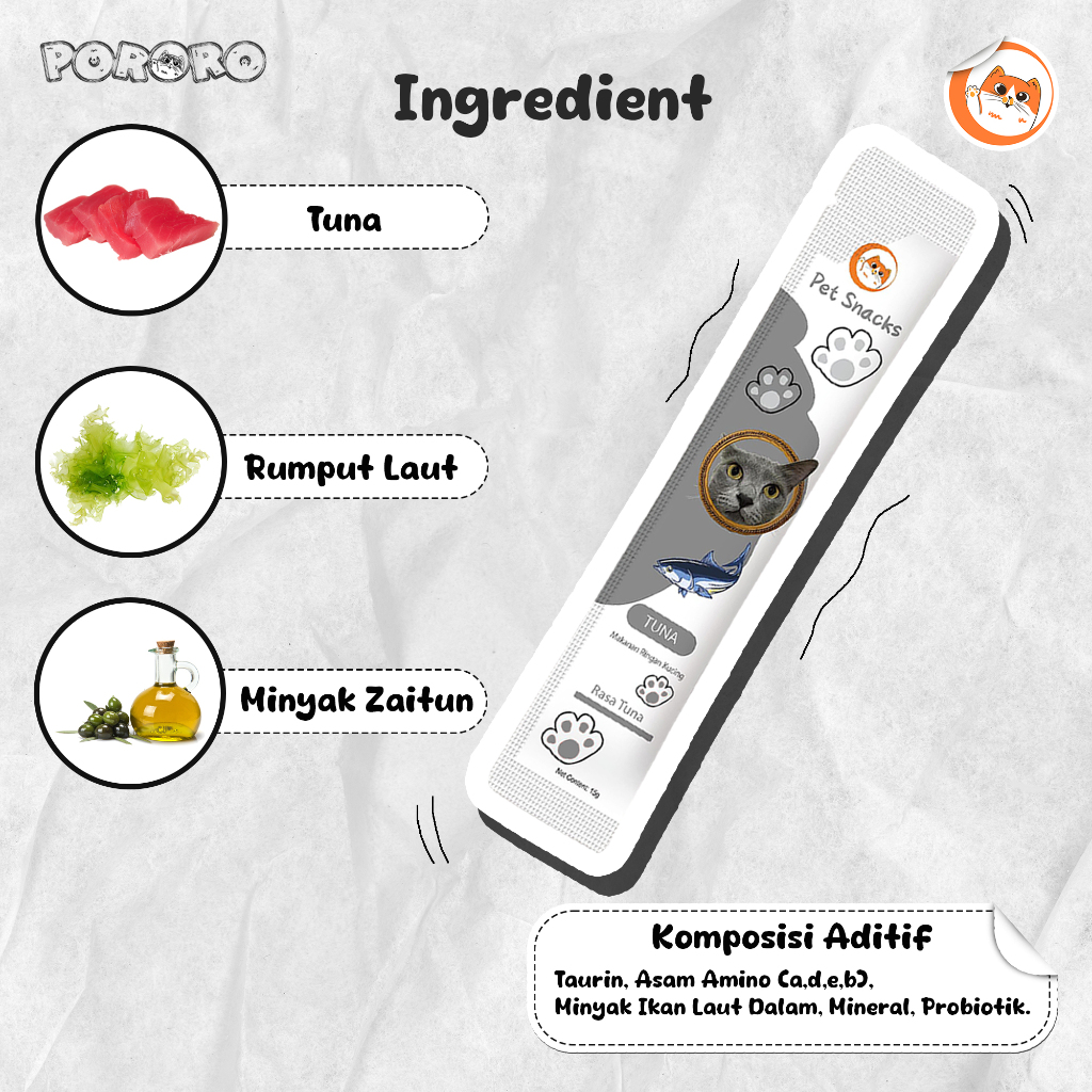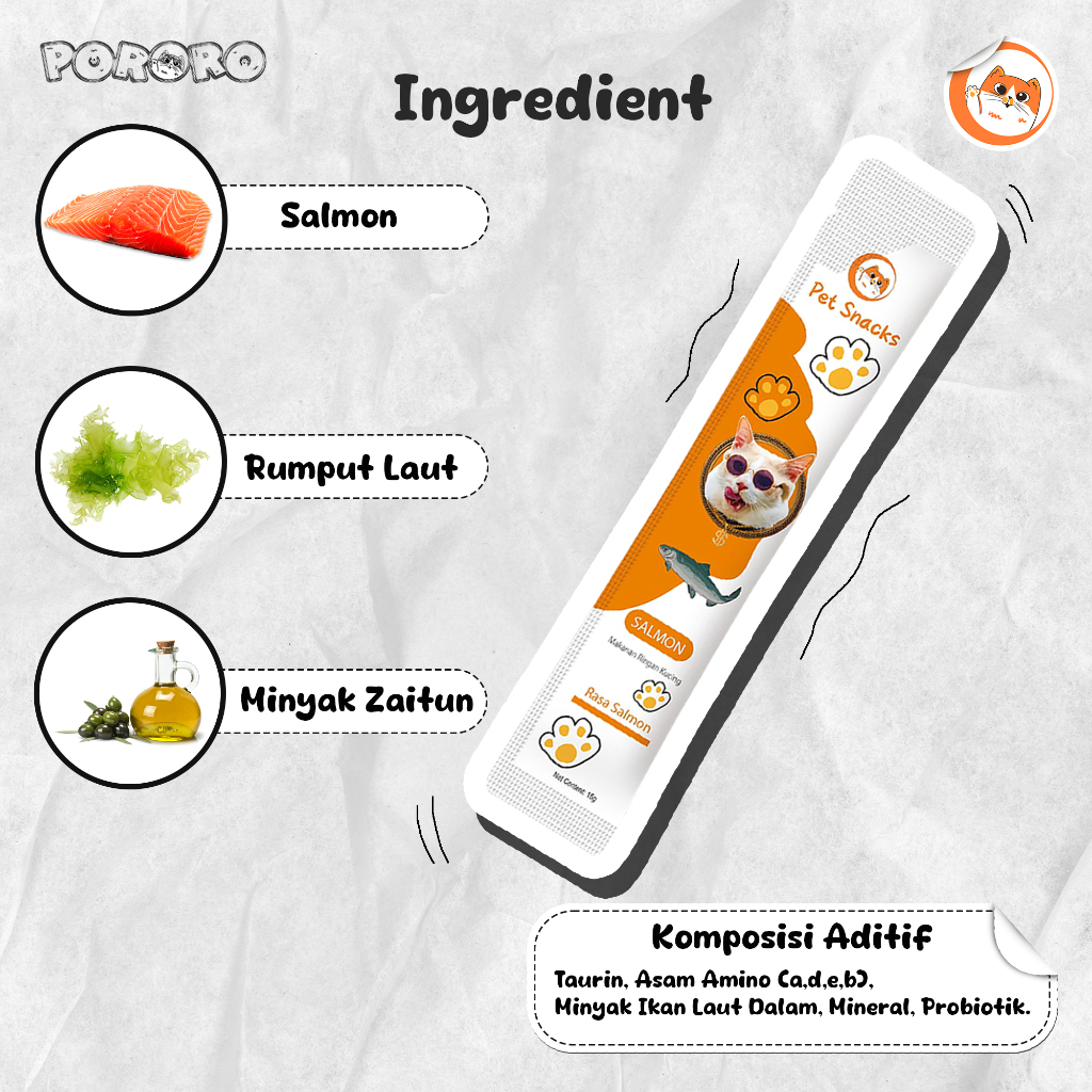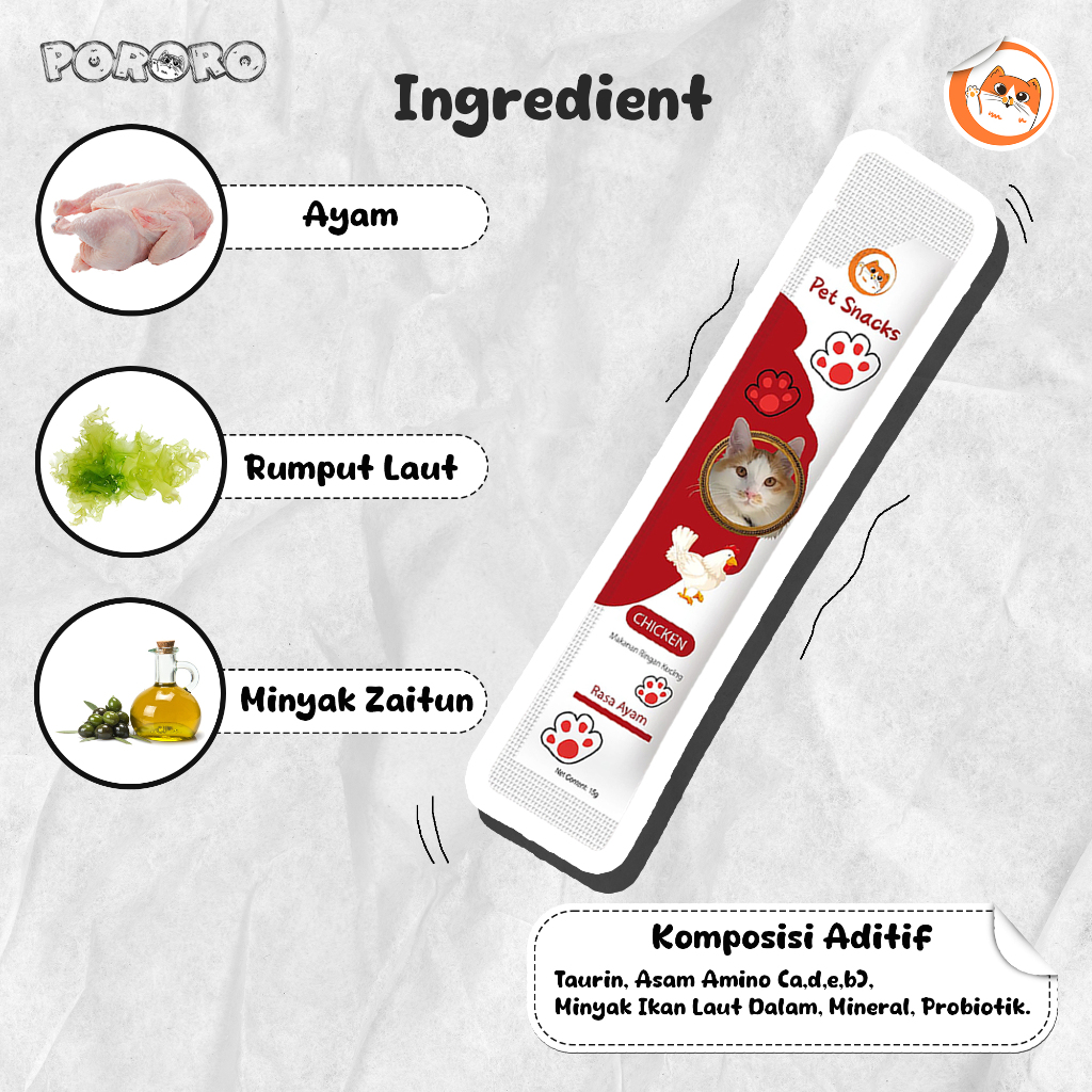 PORORO - Pet Snack Cemilan Kucing Cat Strip Chicken Tuna Salmon 30PCS