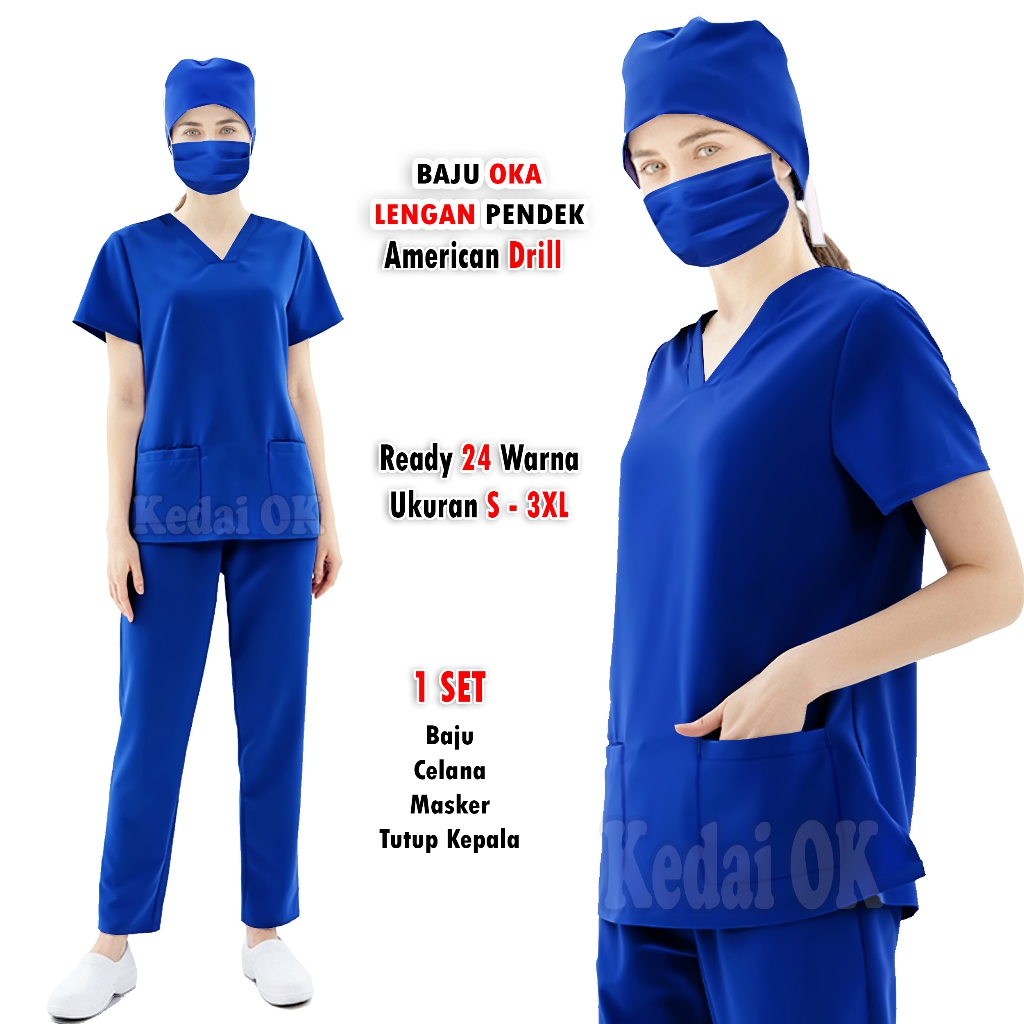 Jual Baju Oka Perawat Medis Lengan Pendek - Seragam OK Scrub Dokter - Bidan - Bahan American Drill