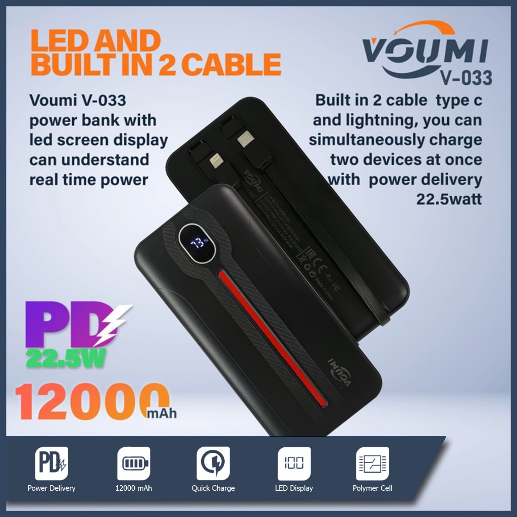 [RAWR MALL] POWER BANK V-033 12.000MAH GARANSI RESMI VOUMI INDONESIA