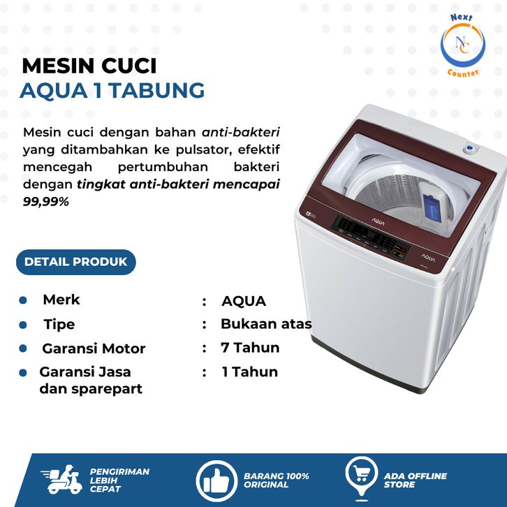 AQUA MESIN CUCI WASHING MACHINE ALAT CUCI PENGE BAJU 1 TABUNG BUKAAN ATAS TOP LOAD HIJAB E AQW 7DD