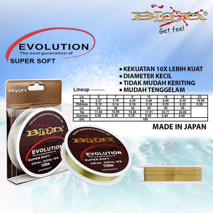 Senar Pancing Original Senar Pancing BLOOD EVOLUTION Super Soft Fishing Line JAPAN 150M