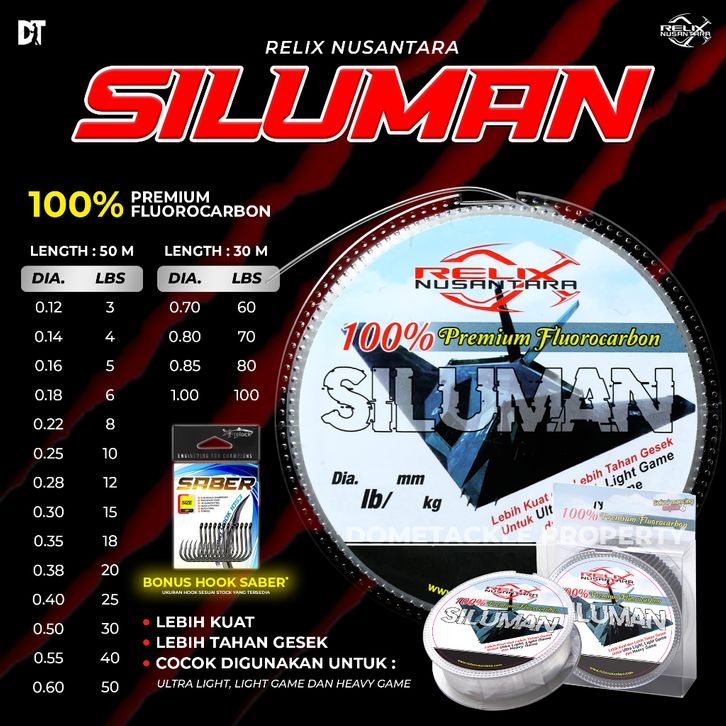 Senar Pancing Original SENAR LEADER SILUMAN RELIX NUSANTARA 100 PREMIUM FLUOROCARBON SENAR PANCING SIZE 50 60 70 80 100