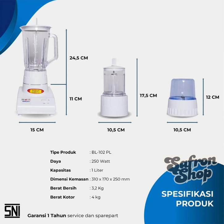 MIYAKO BLENDER BL102 PL / BL 102 PL / BL-102 PL / BL 102PL (PLASTIK / 1 LITER) GARANSI RESMI