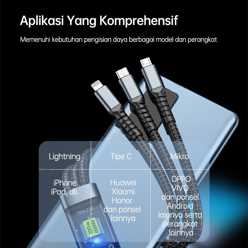 PASEVIN KABEL DATA CHARGER FAST CHARGING 3 IN 1 KABEL LIGHTNING MICRO USB TYPE C BLACK FOR ANDROID IOS TYPE-C