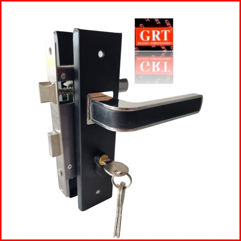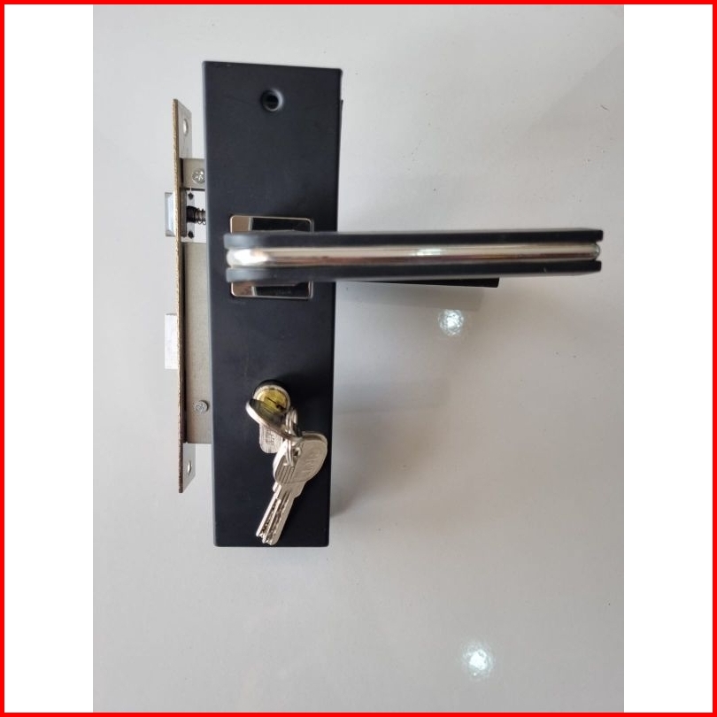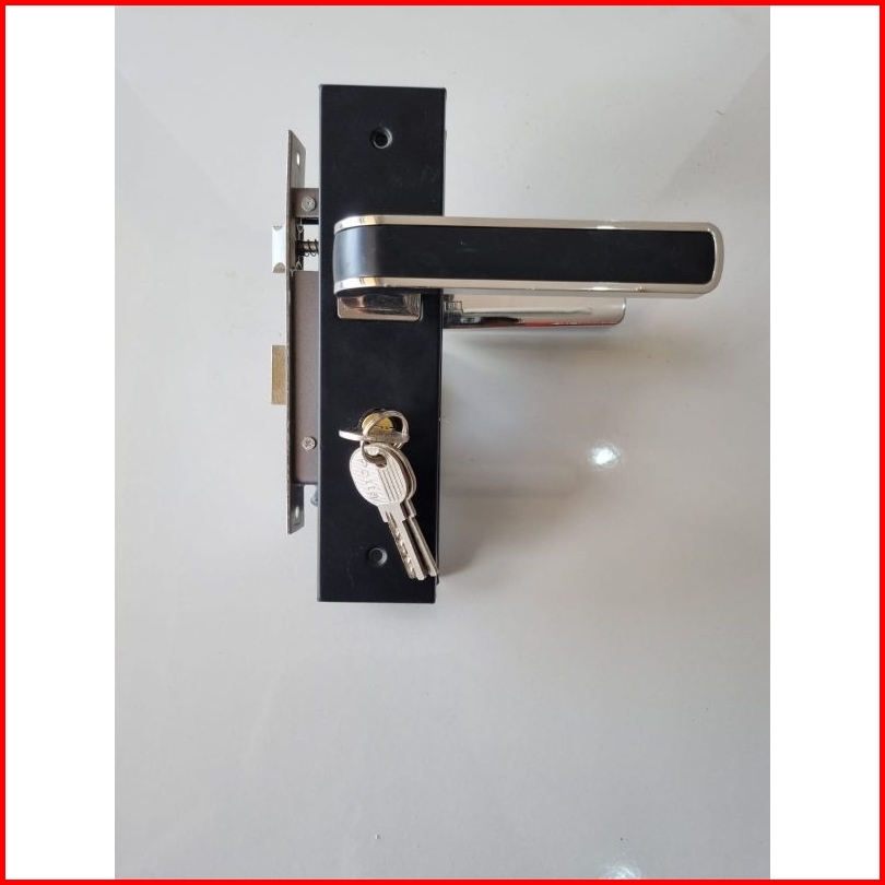 Handle Set Kunci Pintu Tanggung Hitam List Chrome 20 Cm