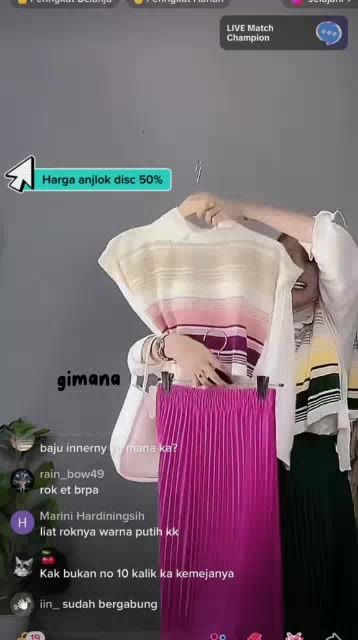 Birel/Blue, Khaki/Hitam, Silver/Hitam, Cream/Mustard, Magenta/Cream, Magenta strip, Khaki strip, Denim Strip, Hitam Strip, Mint strip, Cream strip, Purple strip, Dusty Rainbow, Lilac Rainbow, Banana Rainbow, Green Rainbow, Purple Geysha, Mint Geysha, Khaki Geysha, Hitam Vest Ketupat, Mocca Vest Ketupat, Dusty Vest Ketupat