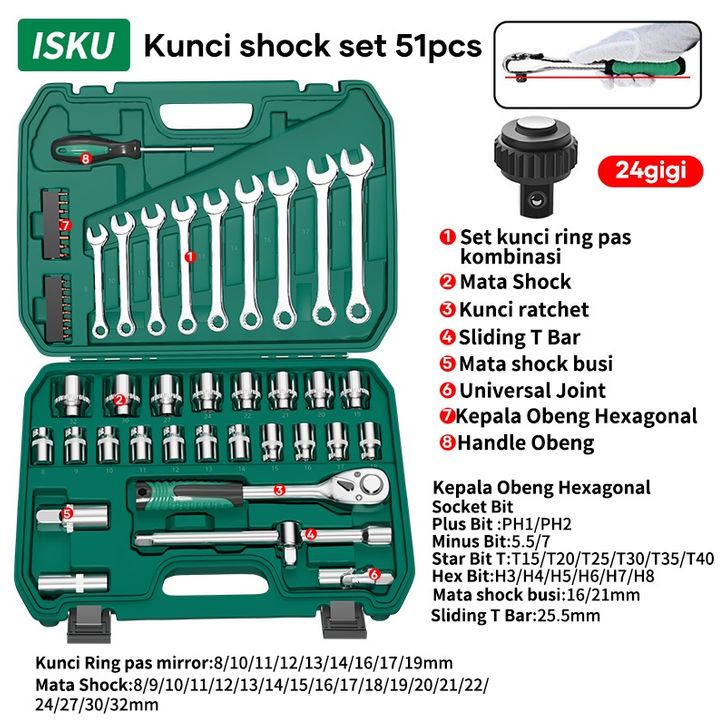 ISKU Tool kit Set alat Kunci Sok set 37pcs/kunci pas Set 12pcs 8-19mm 1/2 kunci Mata Sok lengkap 19pcs Kombinasi 1/2