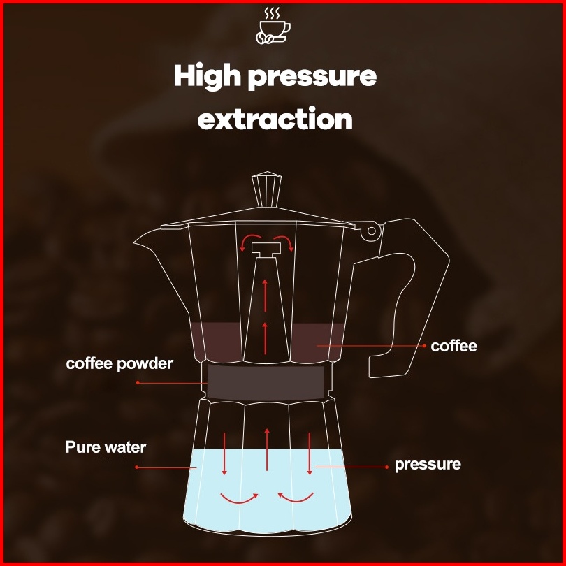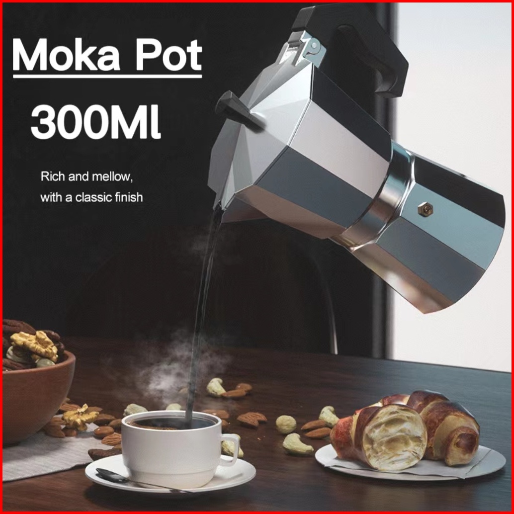 Moka Pot 300ml Espresso Maker Aluminium 2 3 6 Cups Teko Stovetop Filter Pembuat Kopi Espresso