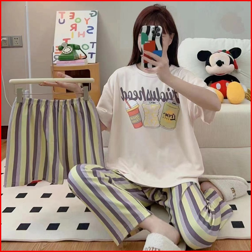 Tteuda Piyama 3 In 1 Piyama Lengan Pendek Baju Tidur Impor Baju Tidur 3in1 Kode G