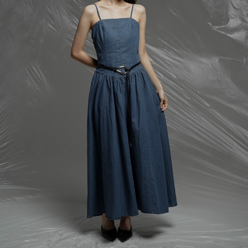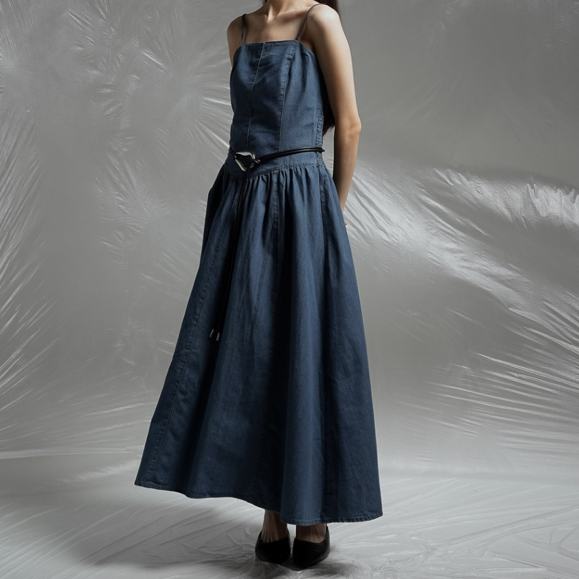 THIS IS APRIL GAUN MAXI JEANS WANITA TANPA LENGAN SHANON DRESS DENIM 70023800
