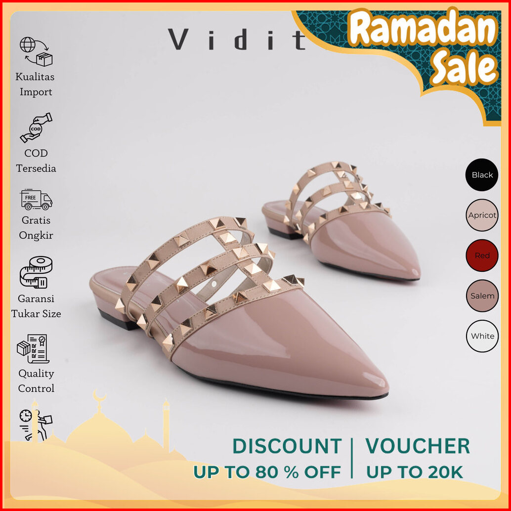Viditi Pamela Sandal Shoes Sepatu Import Wanita Kerja Kuliah Kantor Mules Flat