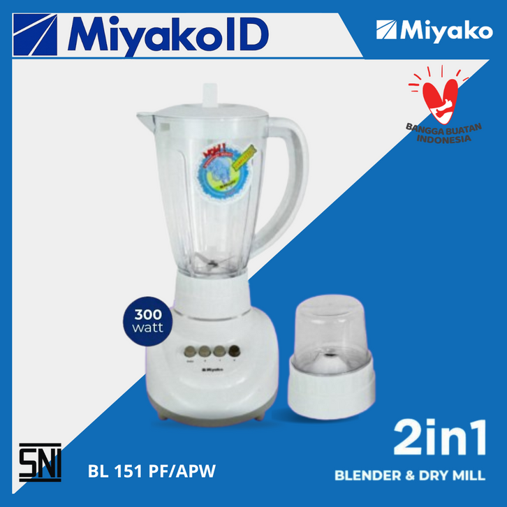[Star] Blender Miyako 2 In 1 Set Belenderan Plastik BL151PF/APW 1.5 Liter 300W White Murah - Miyako Official Store