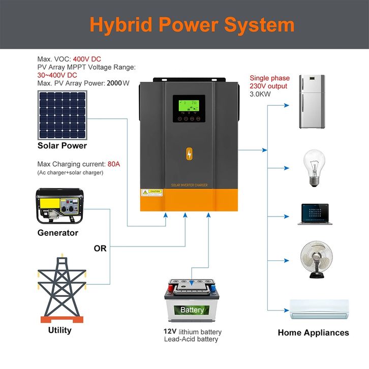 [Toko Resmi] PowMr 1600W inverter hibrida surya - MPPT 80A Pure Sine Wave 1.6KW 12V Hybrid Inverter