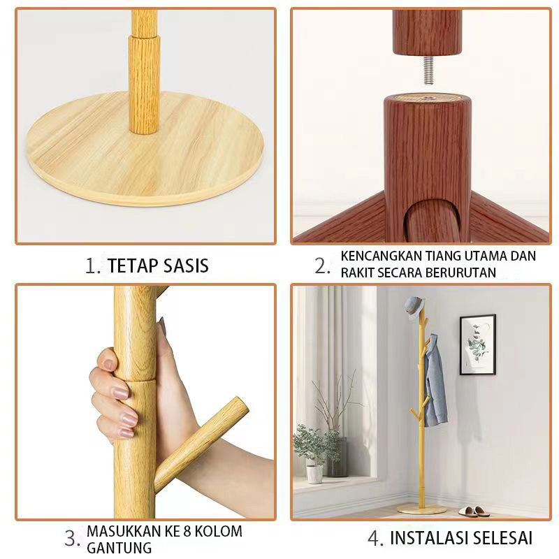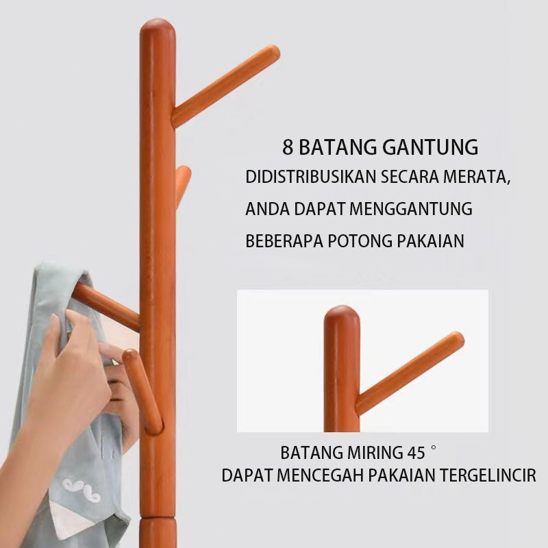 Rak Mantel Topi Baju HangerGantungan Tas Berdiri Multifungsi Stand Bagus Rak mantel kayu