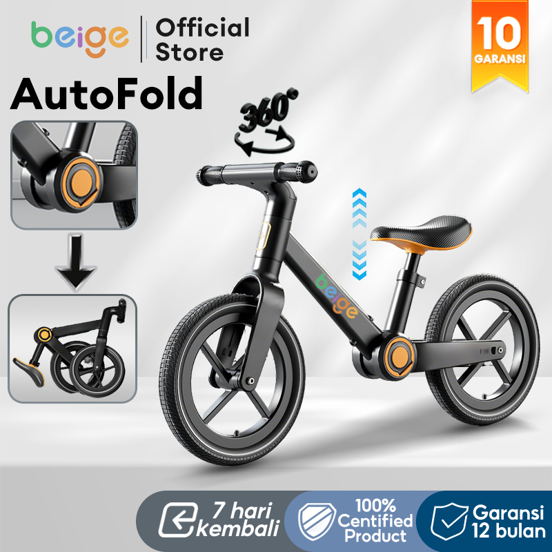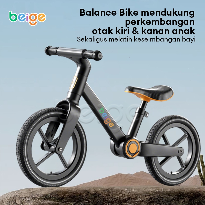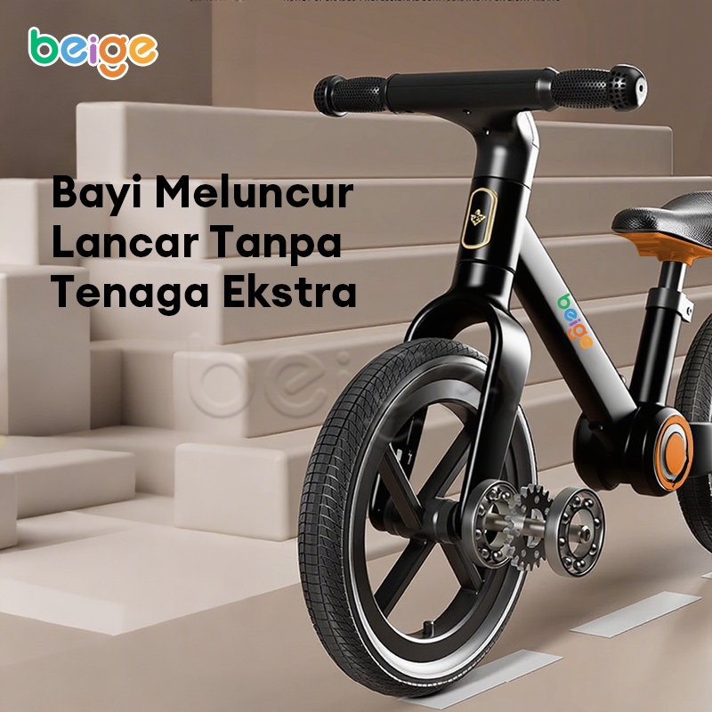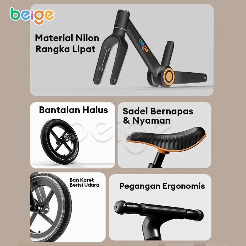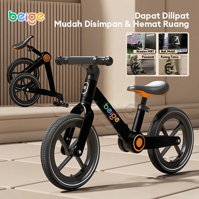 BEIGE Sepeda Anak Balance Bike Lipat Ringan Aluminium 12 Inch - Sepeda Latihan Anak Usia 1-8Tahun
