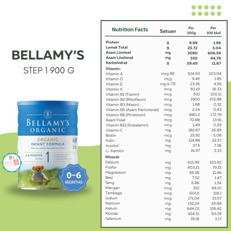Bellamy’s Organic Baby Milk 900gr Step 1 2 3 4 | Bellamys Susu Bayi Organik