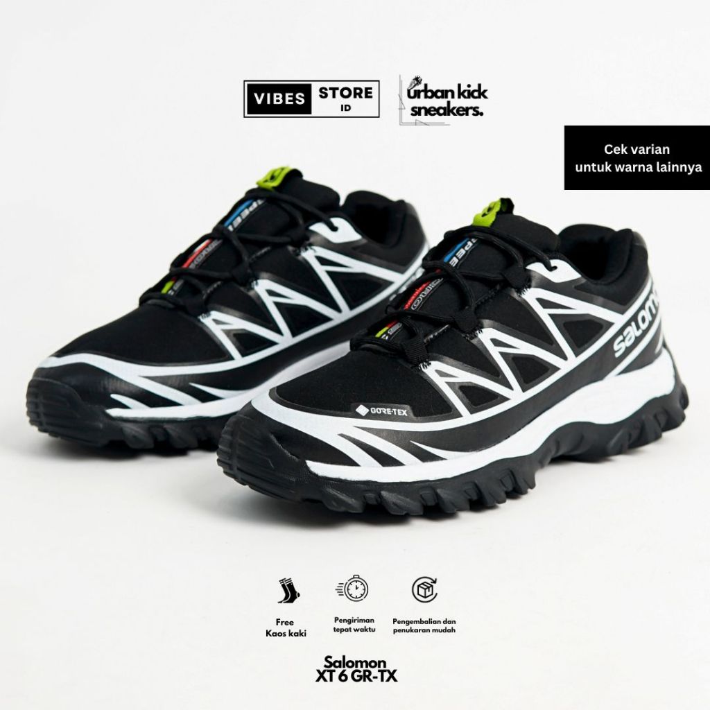 (VIBESSTR) SALOMON XT6 HITAM PUTIH ABU-ABU GR-TX SNEAKERS OUTDOOR RUNNING DAN CASUAL OOTD UNISEX