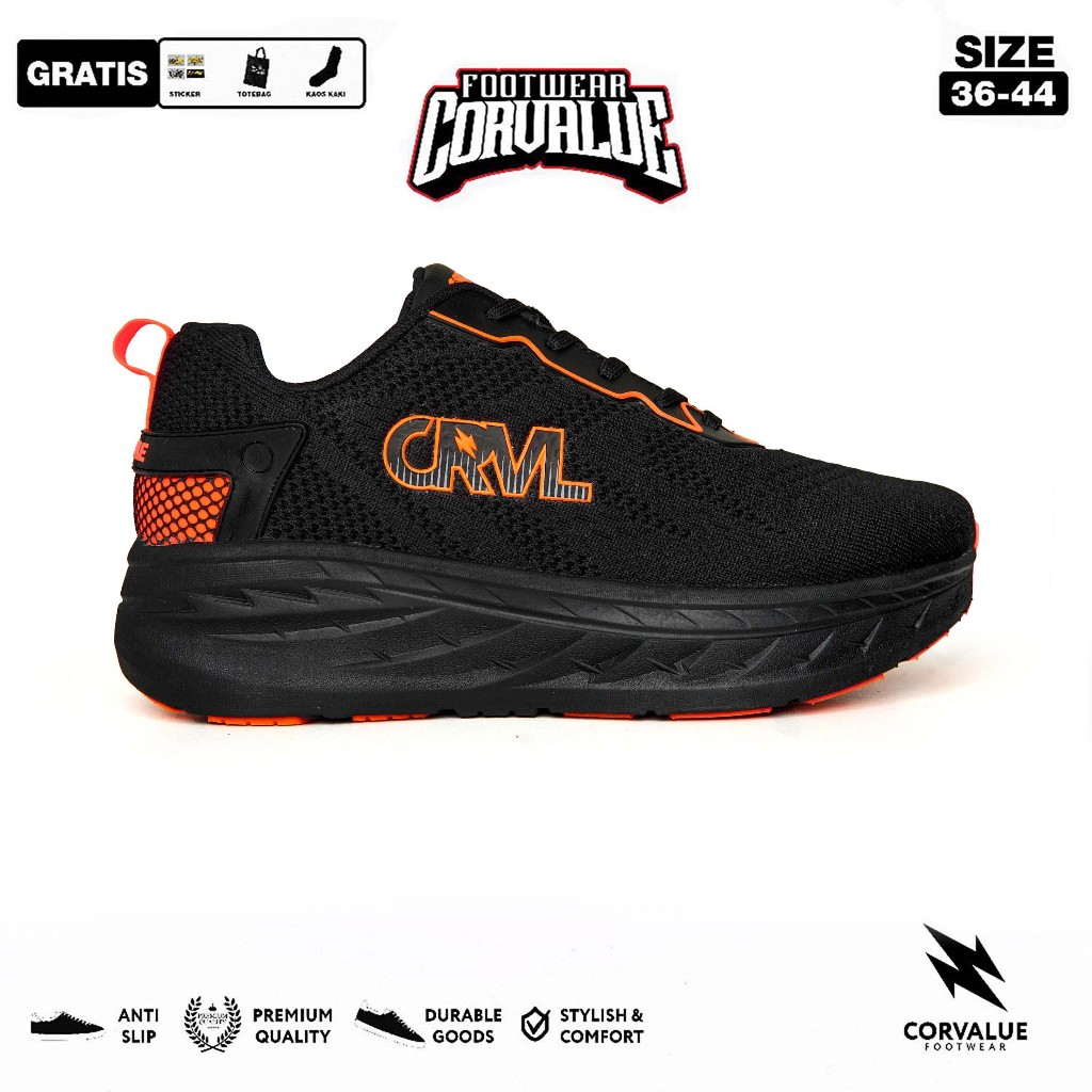 SEPATU CORVALUE FOOTWEAR - SEPATU OLAHRAGA RUNNING UNISEX PRIA WANITA KAKUNODATE BLACK ORANGE | ORIGINAL SEPATU LARI OUT