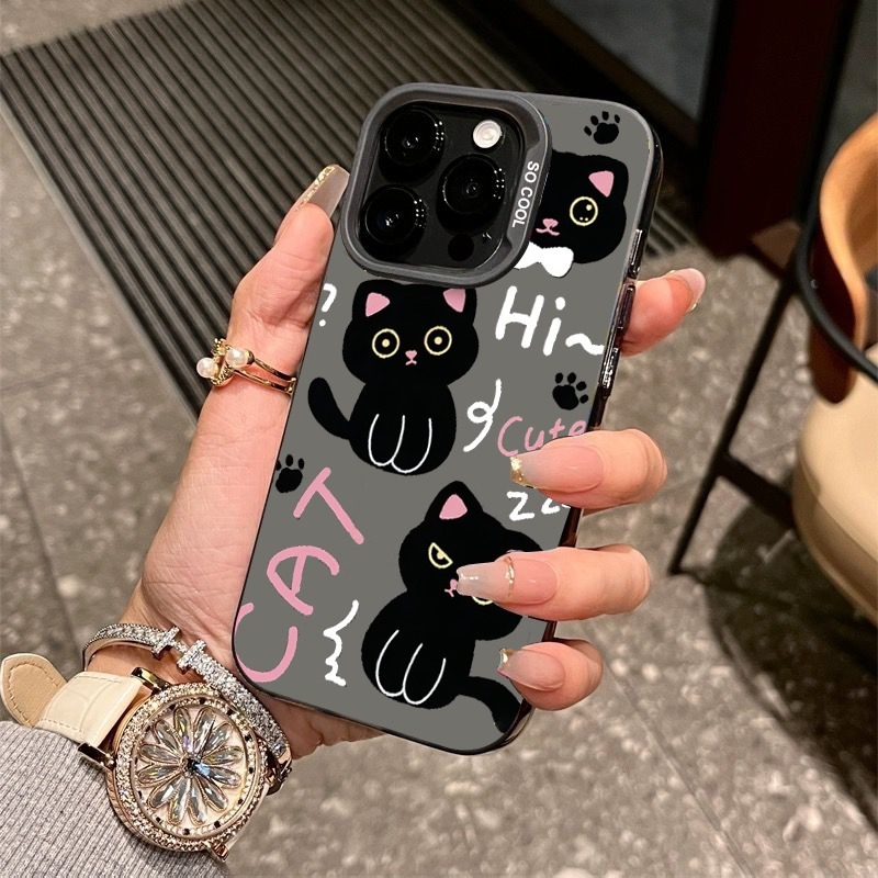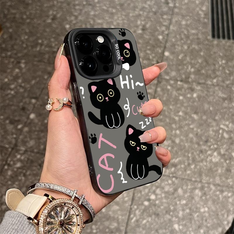 RCI312 Matte Hard Casing Hp Pink Cat Case Aesthetic Compatible For Iphone 7 8 7plus X Xr 11 12 13 14 15 16 Pro Promax P