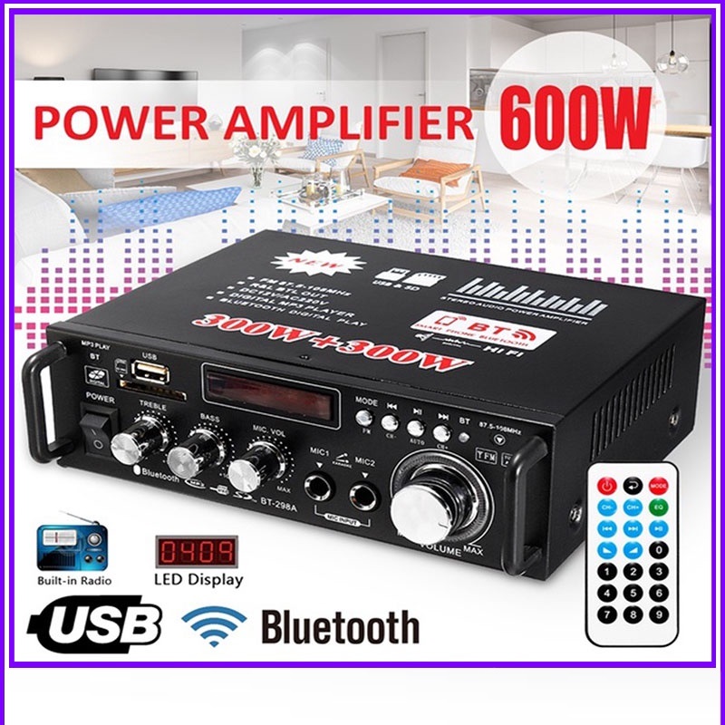AMPLIFIER BLUETOOTH BT-298A 300+300W AMPLI AUDIO KARAOKE HOME THEATER EQ AUDIO KARAOKE HOME THEATER FM RADIO 600W