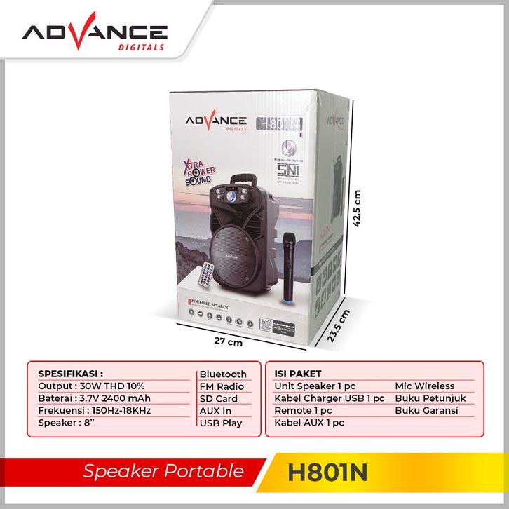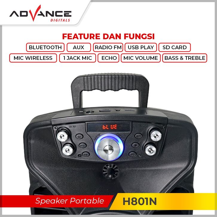 Speaker Bluetooth 【Bisa dikirim hari ini】Advance Speaker Bluetooth Portable TWS 8Inch+1xMic Wireless 801N