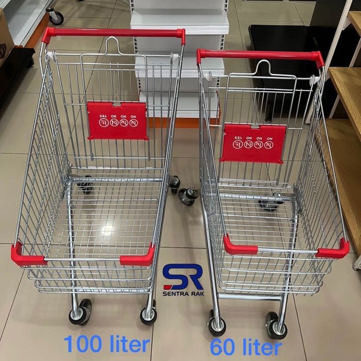 Trolley Belanja Troli Supermarket 60 liter dengan Karet Pelindung Roda Terlaris