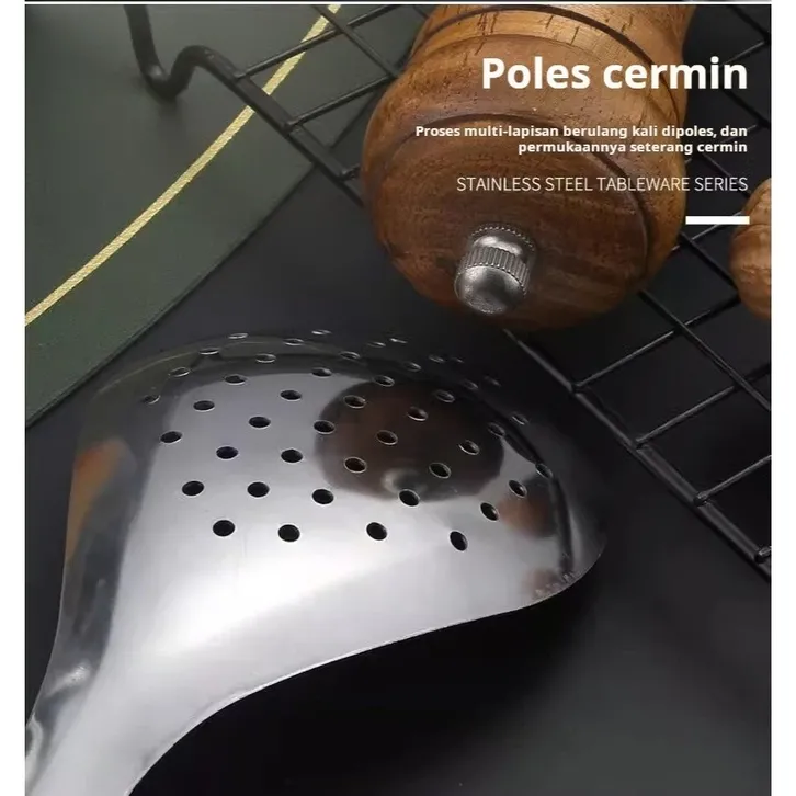 Sendok dapur rumah tangga stainless steel 304 food grade, sendok lada, saringan besar tebal, sendok terak, sendok pangsi