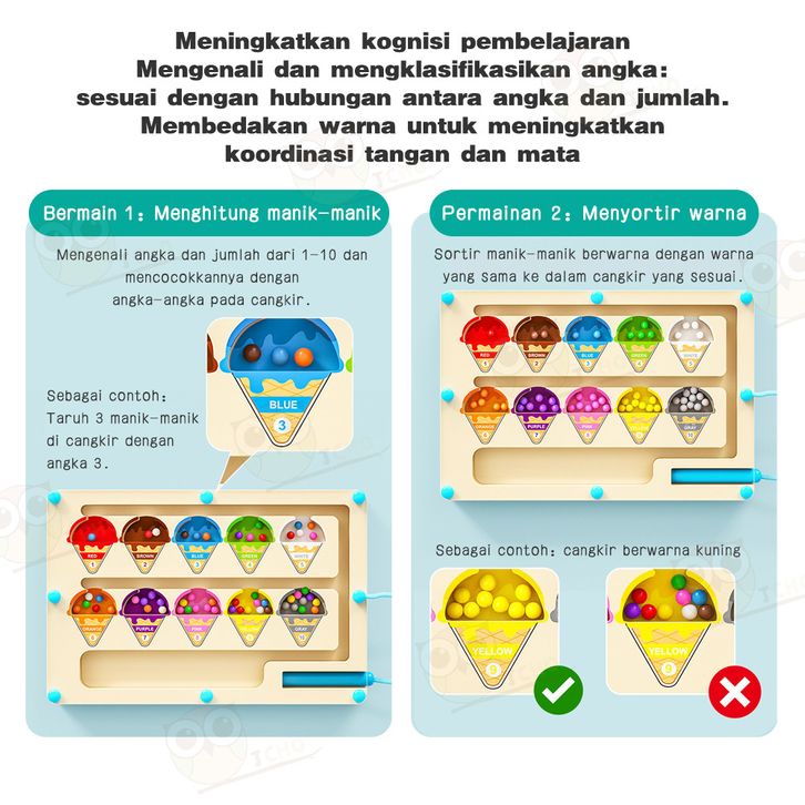 JCHO Color Classification Maze Mainan Sorting Warna Magnet Mainan Edukasi Anak Wooden Toy