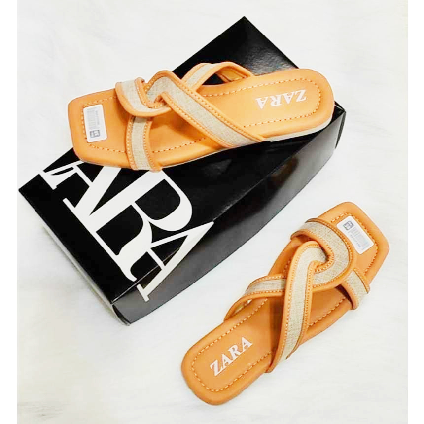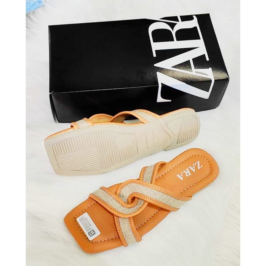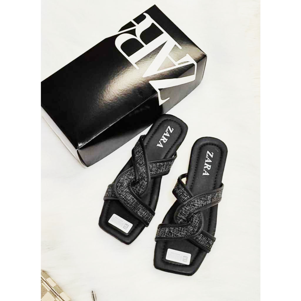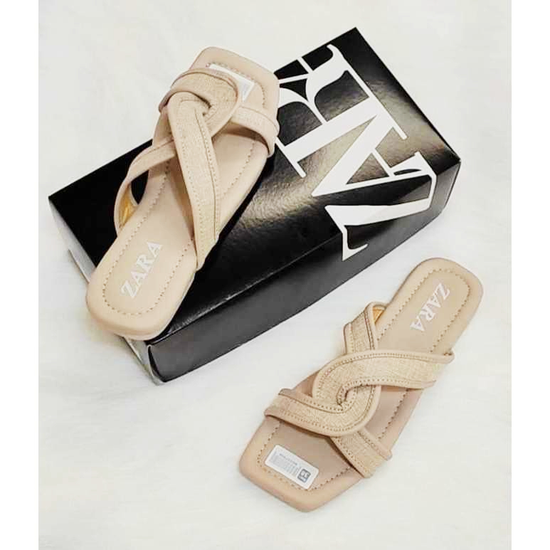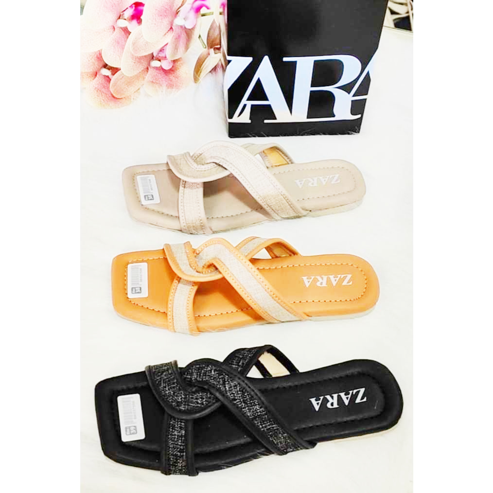PROMO SANDAL FLAT ZARA SELOP KOREAN STYLE CASUAL WANITA KEKINIAN SENDAL SELOP SILANG EMPUK TERNDY
