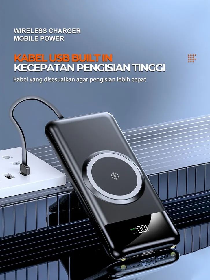 Powerbank 20000mAh Built in Cable Kompatibel dengan semua ponsel Fast Charging Kabel bawaan Type-C Micro USB