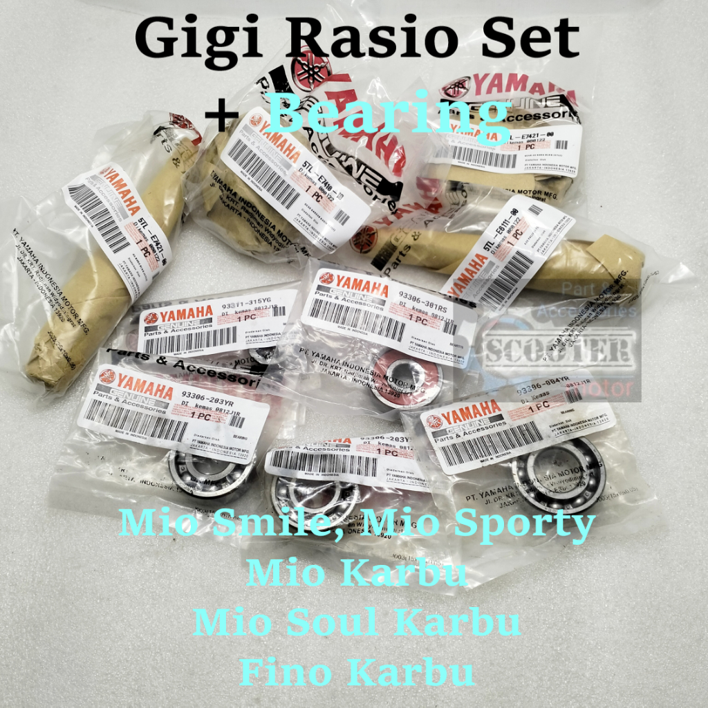 TERLARIS Gigi Rasio Set + Bearing 5TL Yamaha Mio Smile Sporty Fino Soul Karbu Kualitas Original Presisi Tidak Bunyi Dan