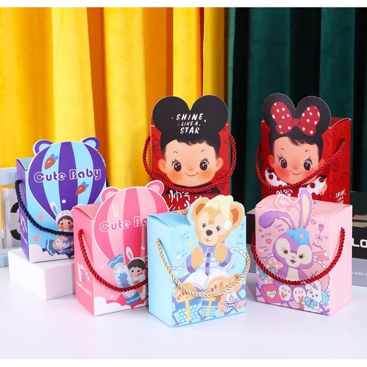 50 Pcs Tas Bingkisan Hadiah Hampers Ulang Tahun Anak Goodie Bag Ulang Tahun Anak Motif Kartun Kotak Souvenir Kantong Te