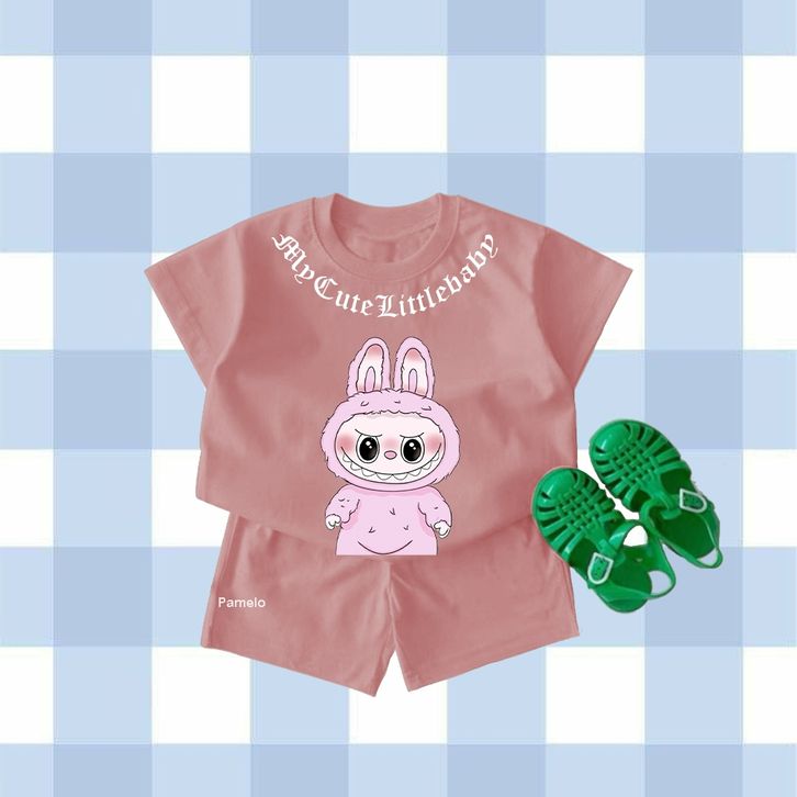 SETELAN BAJU ANAK LABUBU / SETELAN ANAK UNISEX THE MONSTER LABUBU SIZE 4-10 TH KAOS 3/4 CEWEK CELANA PENDEK HARIAN BAJU