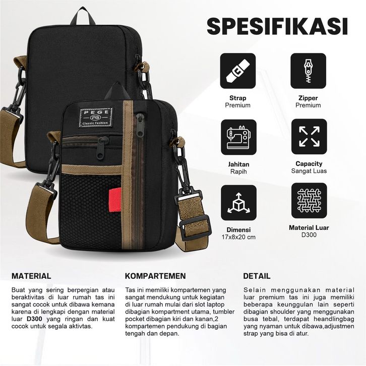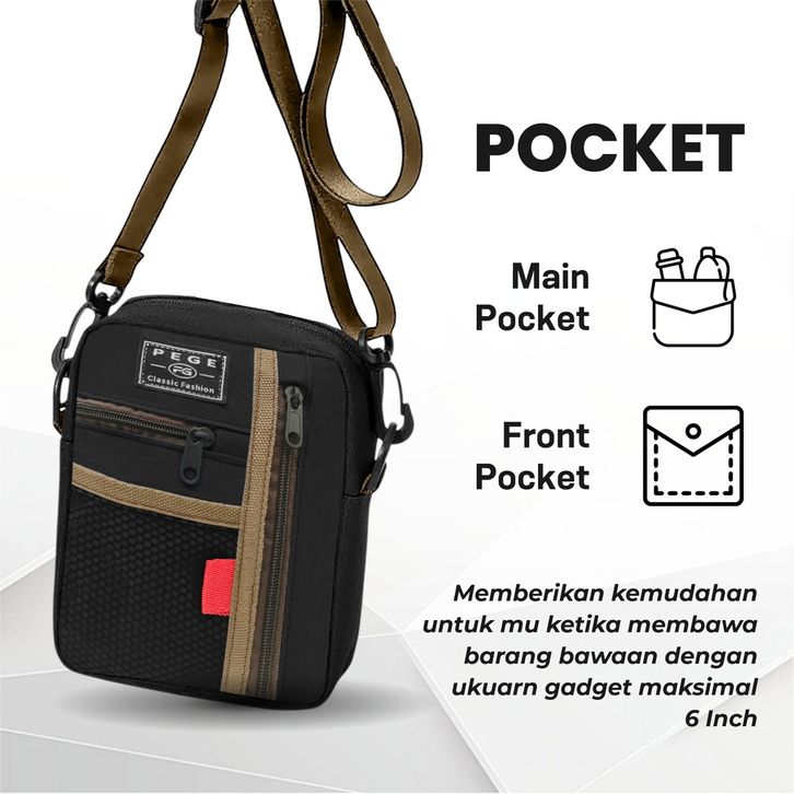 Tas Sling Bag Pria Casual PEGE Meco Selempang Sehari hari Multifungsi - PG 8898