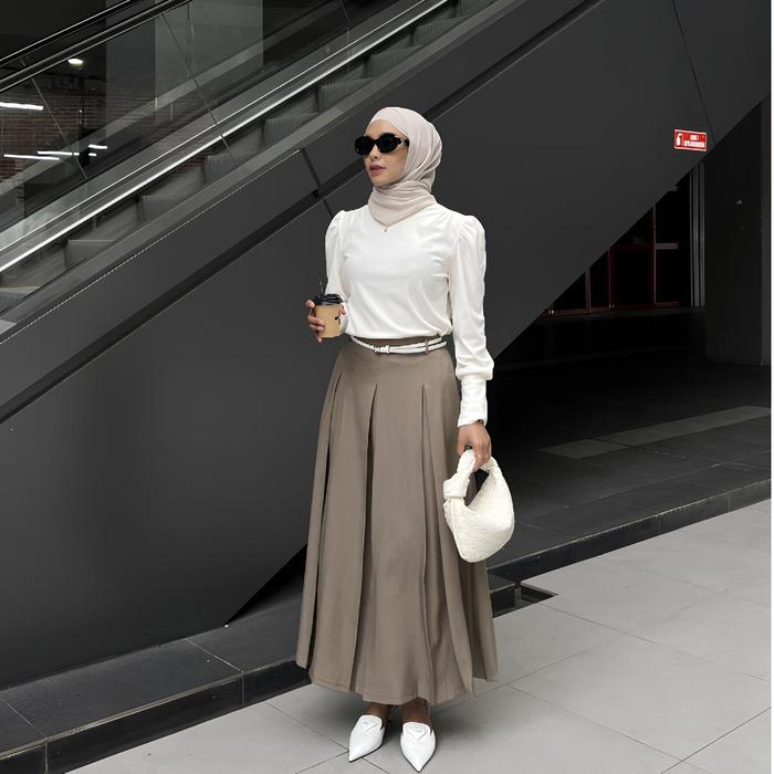 Hi.PRIMA Shenna Skirt Rok Wanita - Dark Grey, Cotton Eve