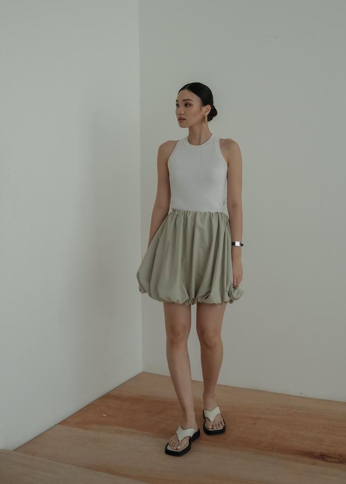 [LESFORMORE] Pamela Baloon Skirt - Rok Balon Mini Wanita Korea - Sage Green
