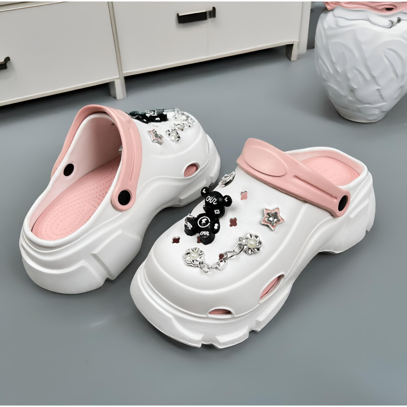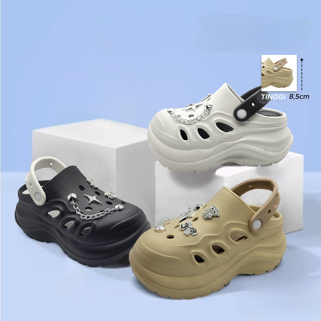 Sandal Wanita Terbaru Sandal Hak Tinggi Super Elegan Sandal Jibbitz Baim Berkualitas Tinggi
