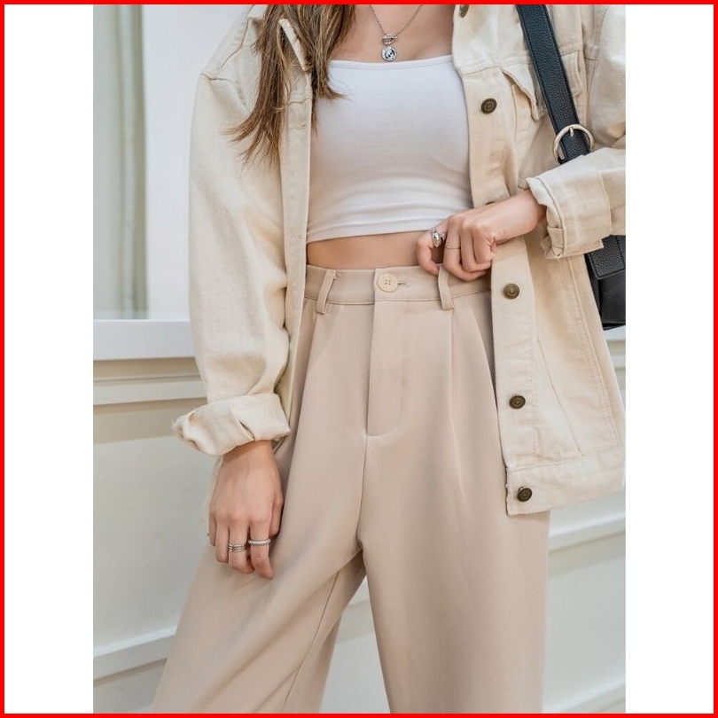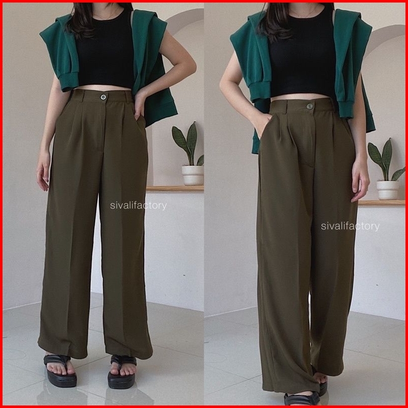 Celana Kulot Wanita Highwaist Losse Pants Trouser Celana Anti Kusut Wanita