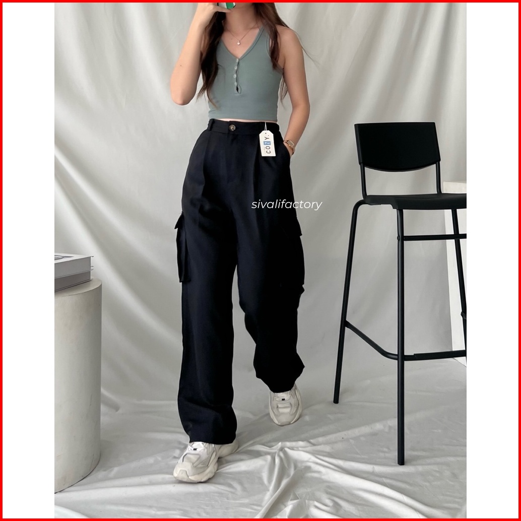 Sivali Joan Cargo Pants - Highwaist Loose Cargo - Celana Kargo Wanita - Baggy Pants 823