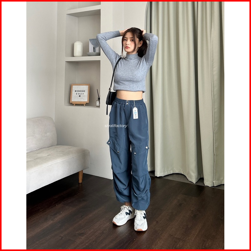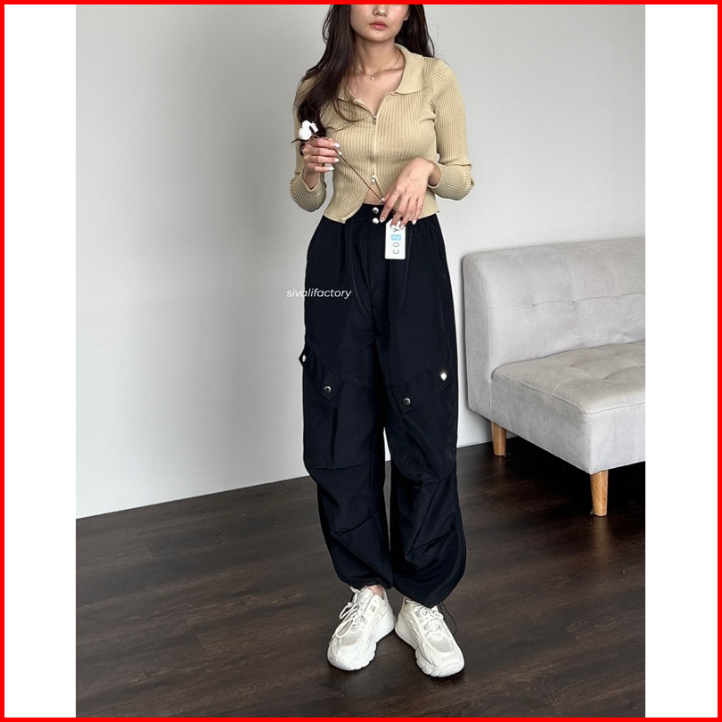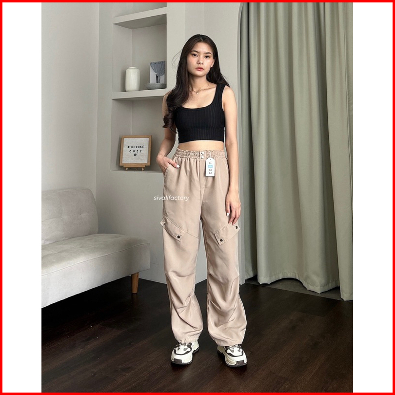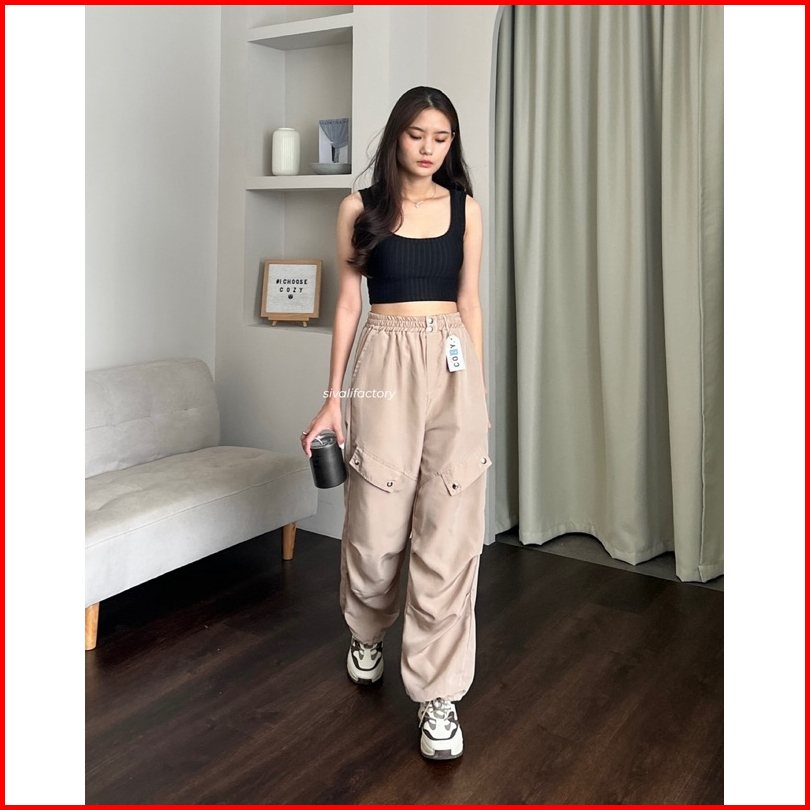Sivali Como Pants - Celana Kulot Jogger Cargo Serut Highwaist - Kargo Wanita