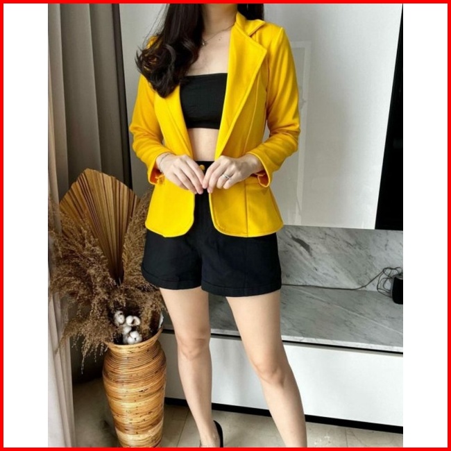 Polos Hitam Krem Sage Blazer Korean Scuba Premium