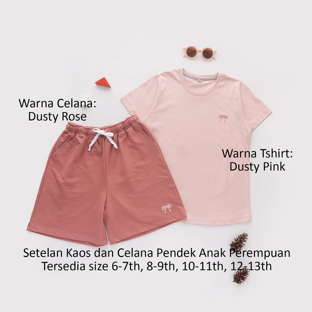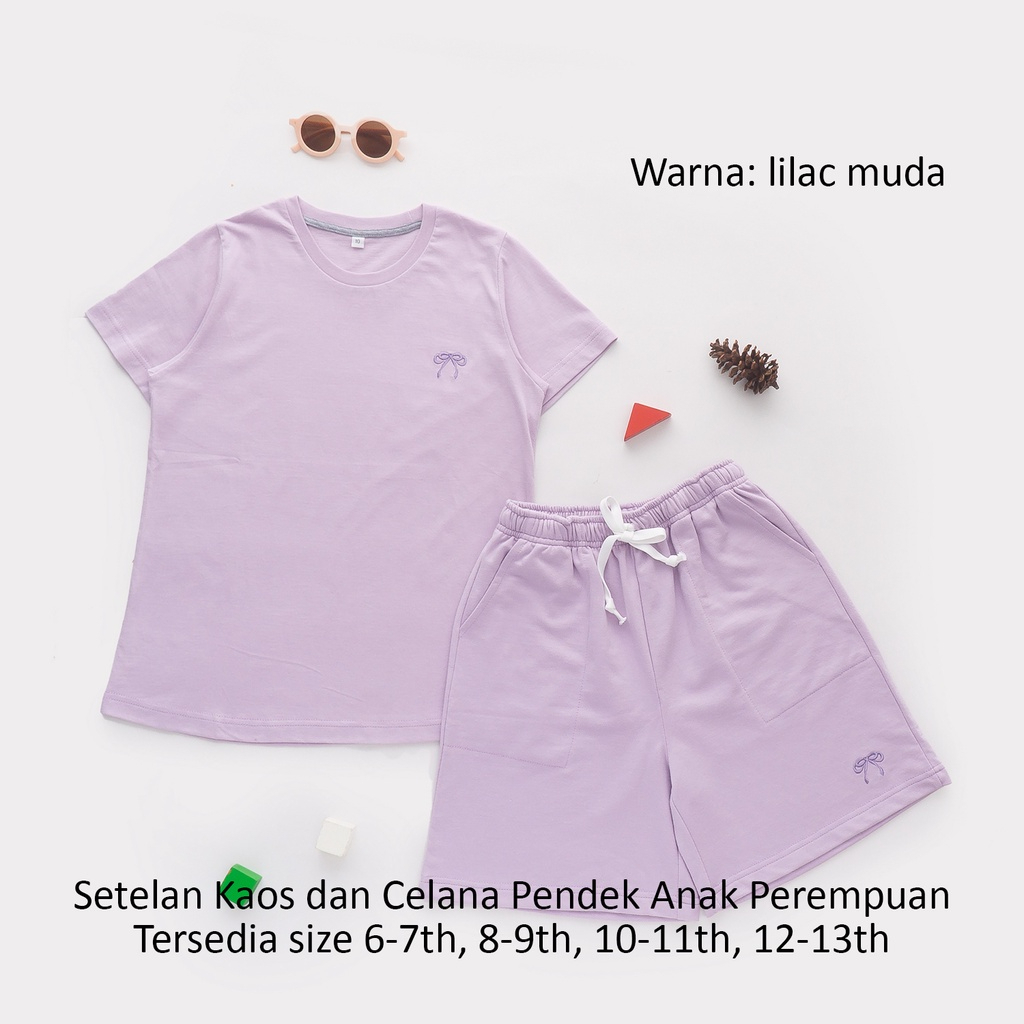Setelan Oneset Kaos Basic Tee dan Celana Pendek Anak Perempuan Katun Harian 6 8 10 12 tahun