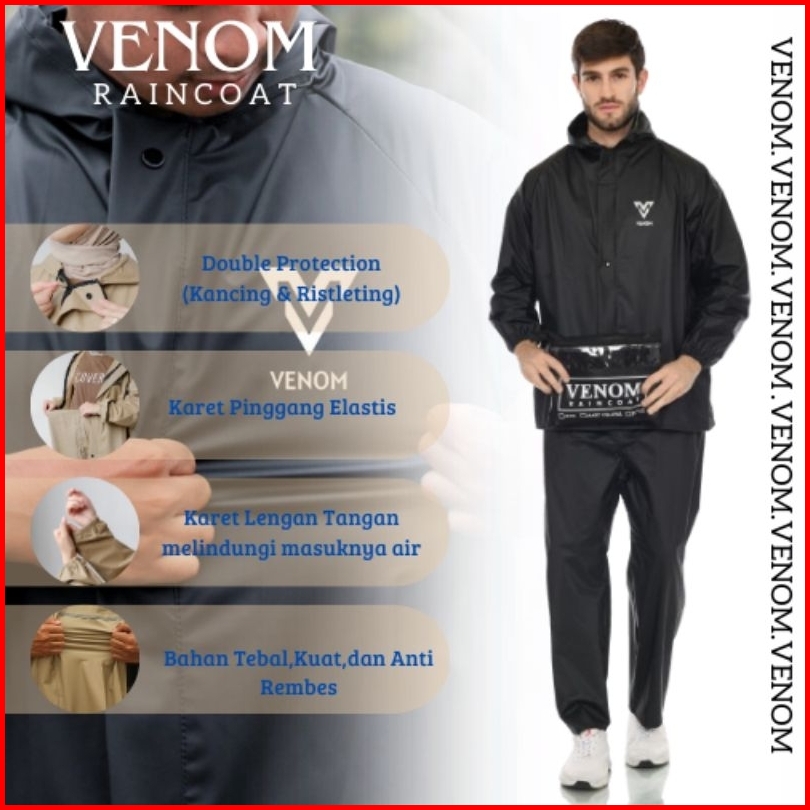 Jas Hujan Raincoat Setelan Celana Terbaik Pria Dan Wanita Anti Rembes Bahan Pvc 0 25 Tebal Kuat Elastis By Venom Origina